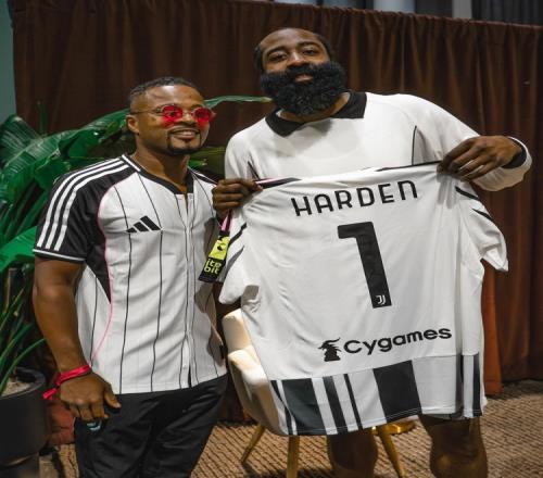 篮球资讯6月22日宣 近日在纽约参加活动的哈登和足球俱乐部尤文图斯梦幻联动,由前尤文球员埃弗拉代表球队赠送了一件尤文图斯的一号球衣给哈登。尤文图斯也在社媒分享到:“当足球邂逅篮球传奇。”